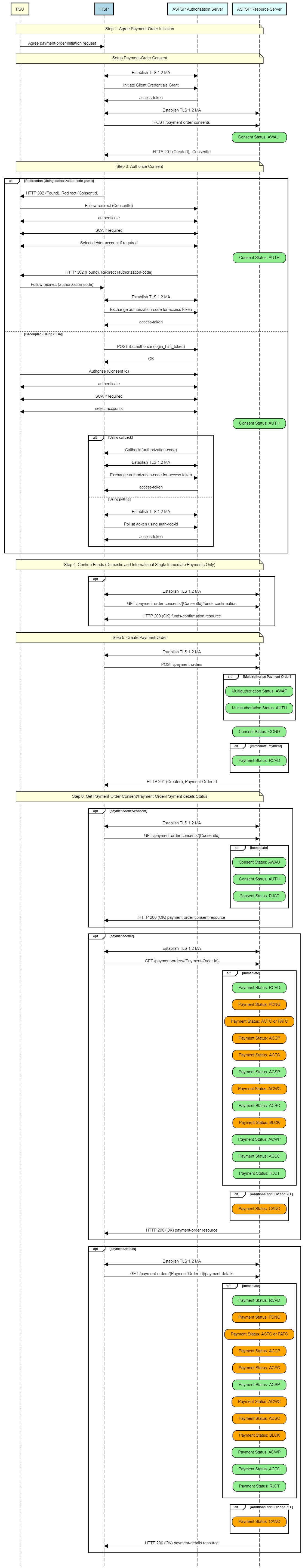 The payment-order consent and payment-order resource in the following flow generalises for the different payment-order types. e.g. for a domestic payment, the payment-order consent resource is domestic-payment-consents; and the payment-order resource is domestic-payments.