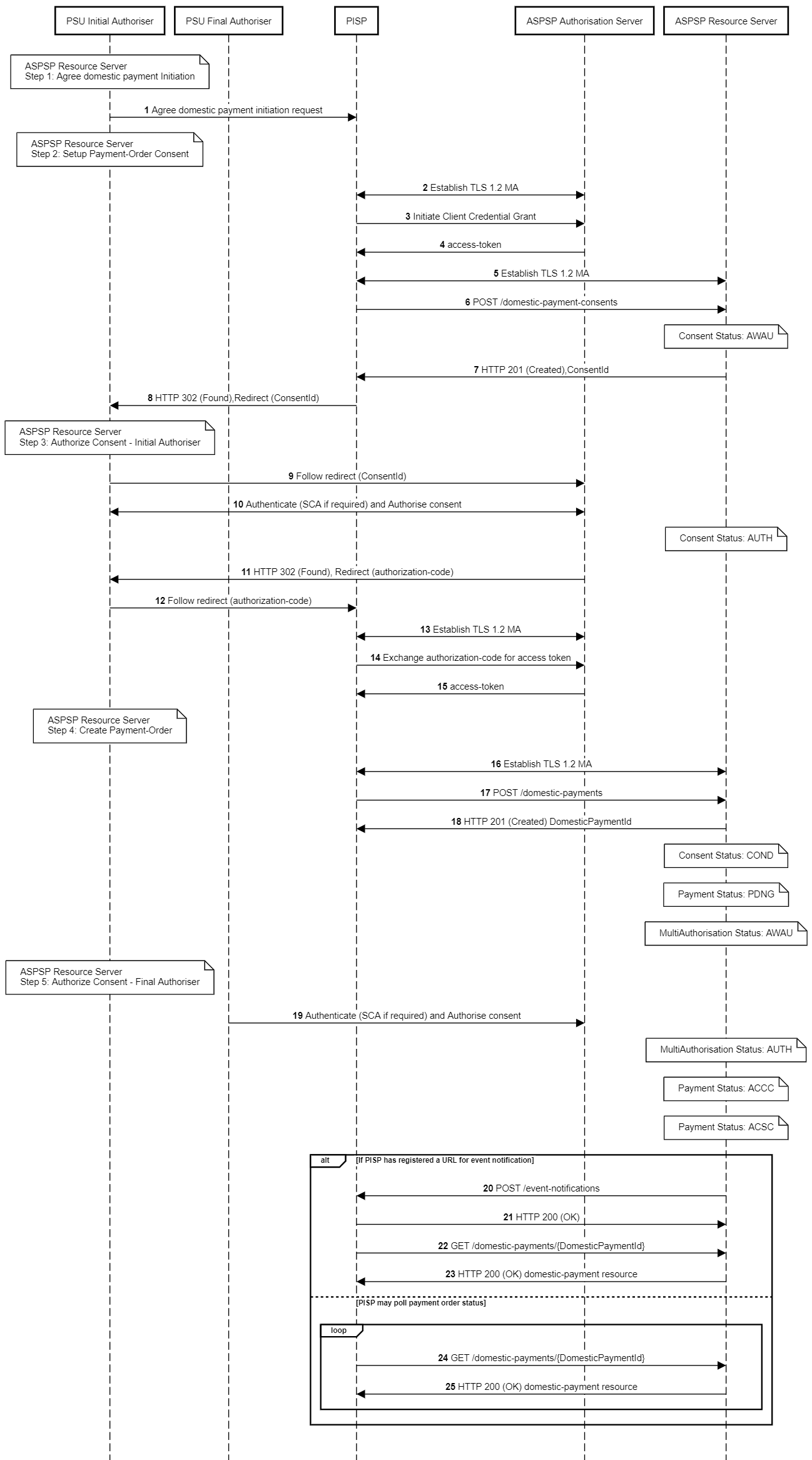 note over ASPSP Resource Server:Payment Status: ACCC
